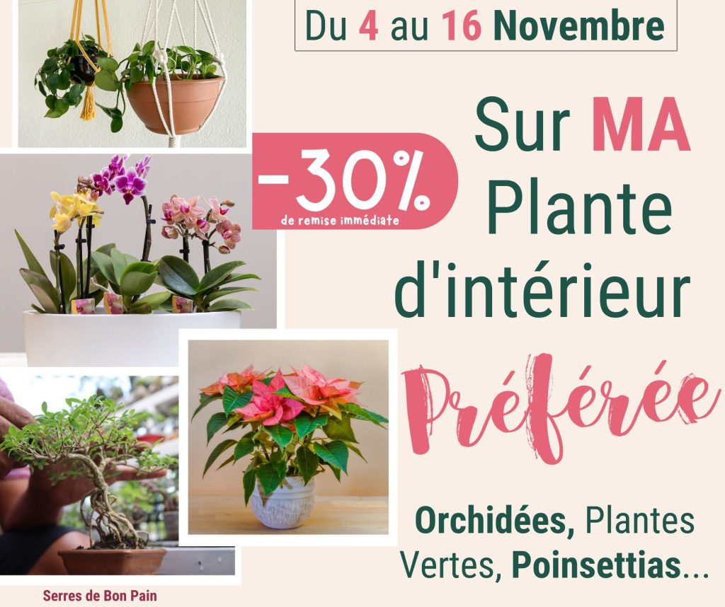 On a pensé à tout pour vous faire plaisir, sans culpabiliser ! C'est Noël avant l'heure dans votre jardinerie les Serres de Bon Pain. 𝐃𝐞́𝐜𝐨𝐮𝐯𝐫𝐞𝐳 une offre seulement pour vous, sur MA plante d'intérieur préférée : orchidée, plante verte, poinsettia ... craquez pour votre COUP DE CŒUR !